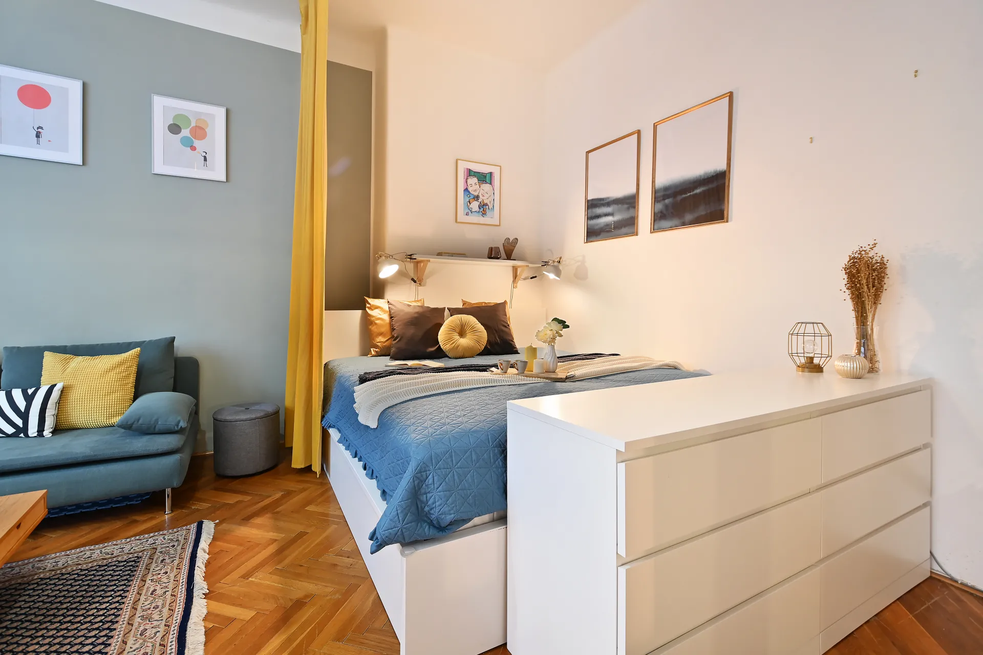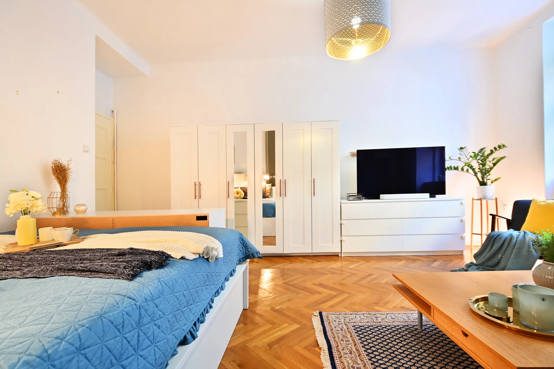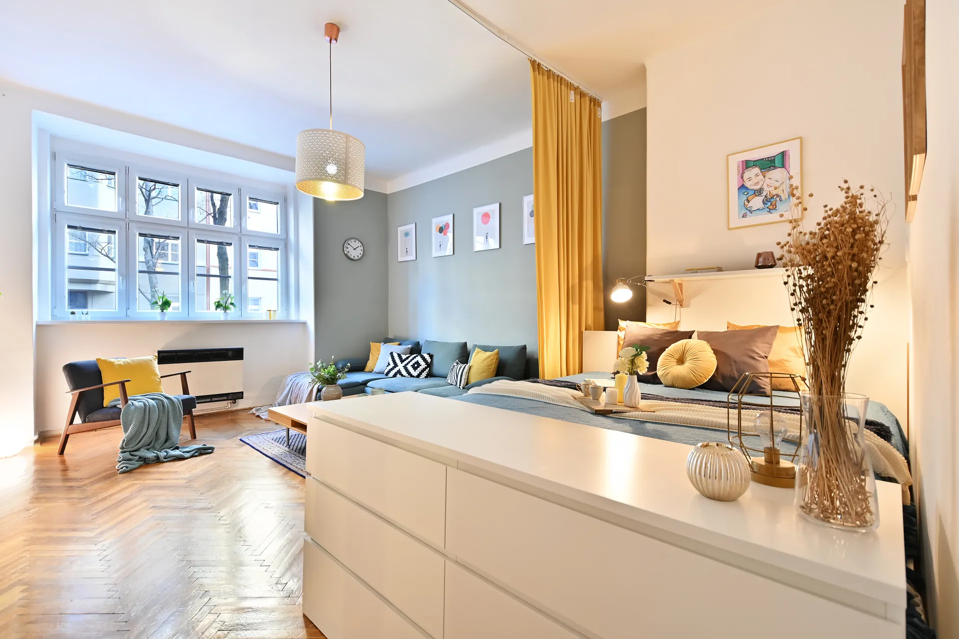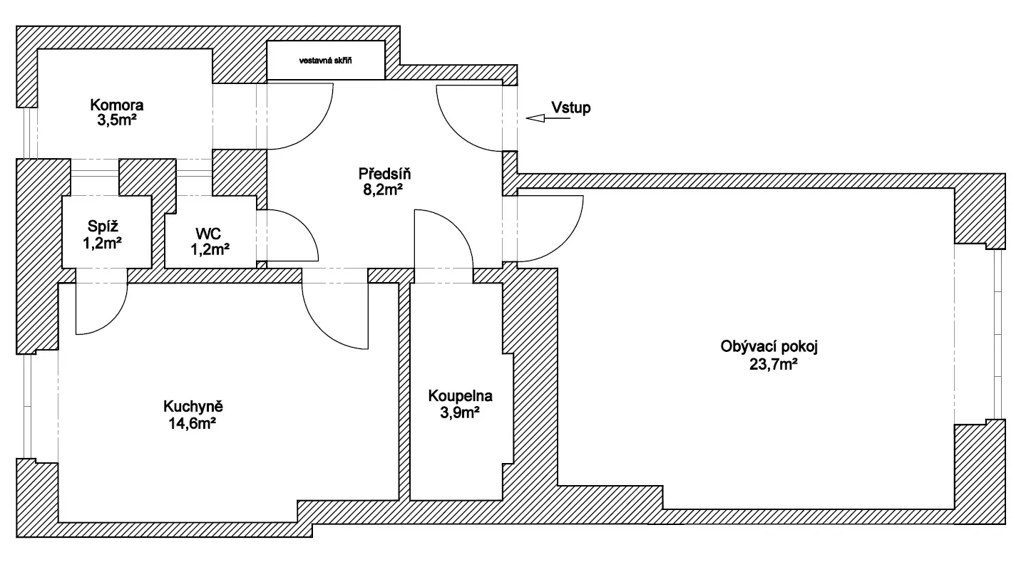 Pro zájemce o příjemné bydlení ve velmi dobře občansky vybavené části Prahy 3 – Žižkov, ulice Hájkova, nabízím exkluzivně prodej dostatečně prostorného bytu 1+1 (53m2) se sklepní kójí a možností pronájmu parkovacího stání nedaleko. Byt je situovaný v původní cihlové zástavbě klidné části Žižkova a samotný dům o pěti patrech prošel rekonstrukcí společných prostor, výměnou oken a sanací sklepů. Samotná bytová jednotka nacházející se v prvním patře (2.NP), je před rekonstrukcí, avšak v udržovaném funkčním stavu. V rámci rekonstrukce lze změnit dispozici bytu na 2+kk. Hlavní část bytu tvoří světlý obývací pokoj (23,7m2, orientace na východ) dostatečně prostorný pro případnou kuchyňskou linku (nyní prostor určený pro spaní). Na opačné straně bytu se nyní nachází oddělená kuchyň (14,6m2, orientace západ) s výhledem do klidného vnitrobloku. V centrální části bytu je vstupní hala, umožňující vstup do koupelny, na samostatnou toaletu a do praktické komory. V obytných pokojích jsou na podlaze parkety, ve vstupní hale (8,2m2) nová dlažba. K vytápění bytu se používají vafky, ohřev vody karmou. Budoucí majitel jistě ocení kompletní občanskou vybavenost a výbornou dopravní obslužnost. V okolí jsou velmi dobré restaurace a kavárny, parky, školy a školky. To vše v docházkové vzdálenosti. V případě zájmu o další informace či prohlídku mě, prosím, kontaktujte. Těším se na setkání.