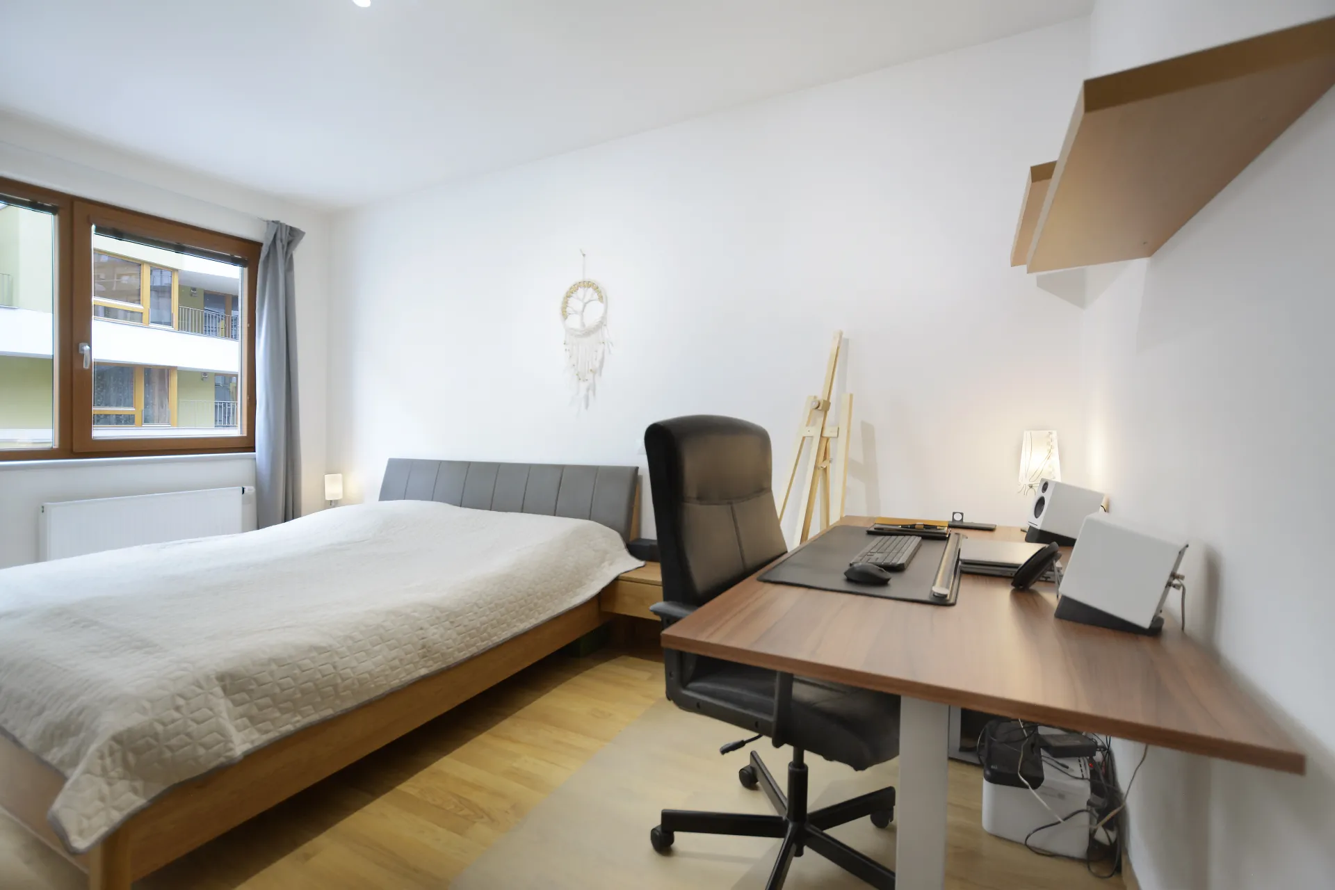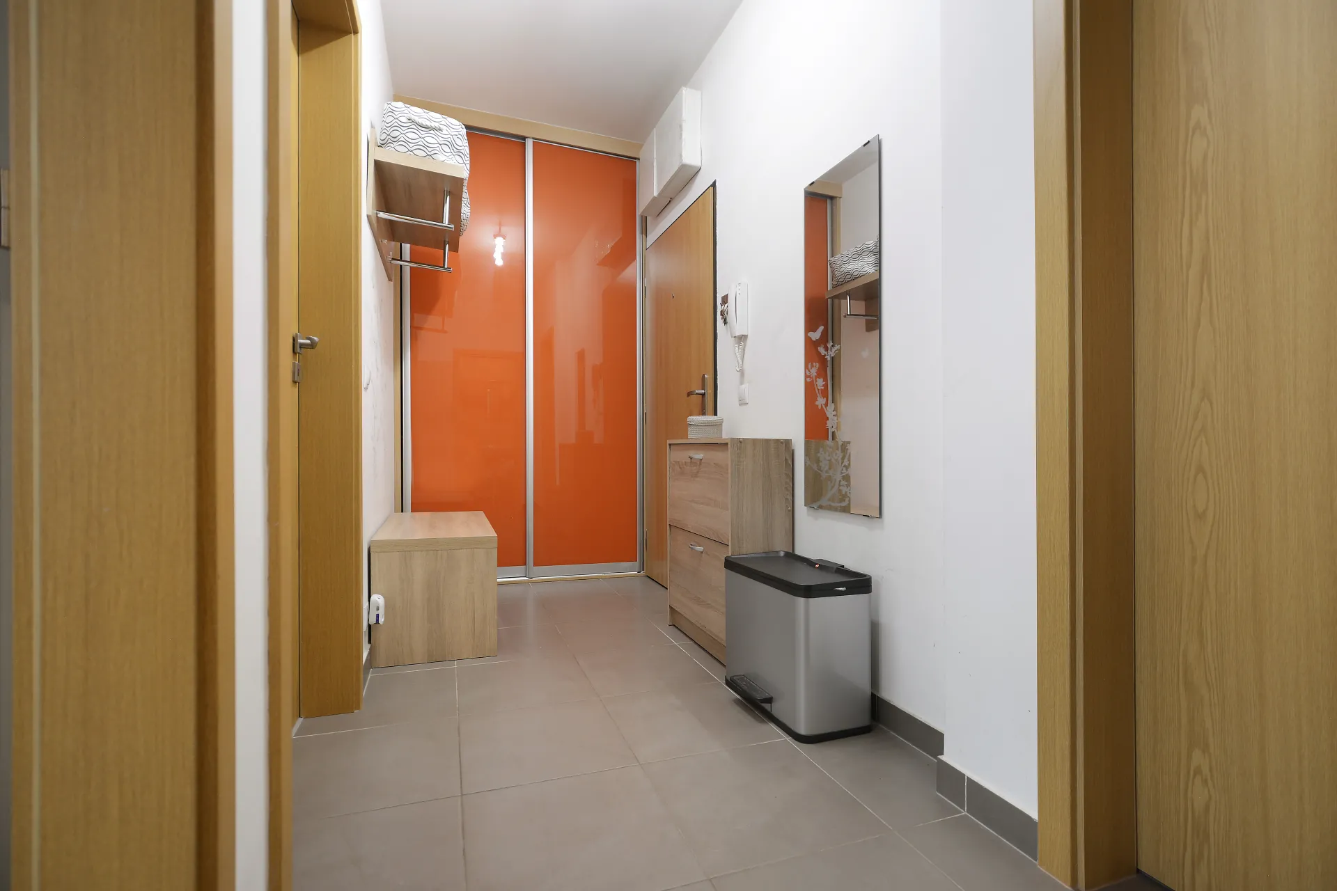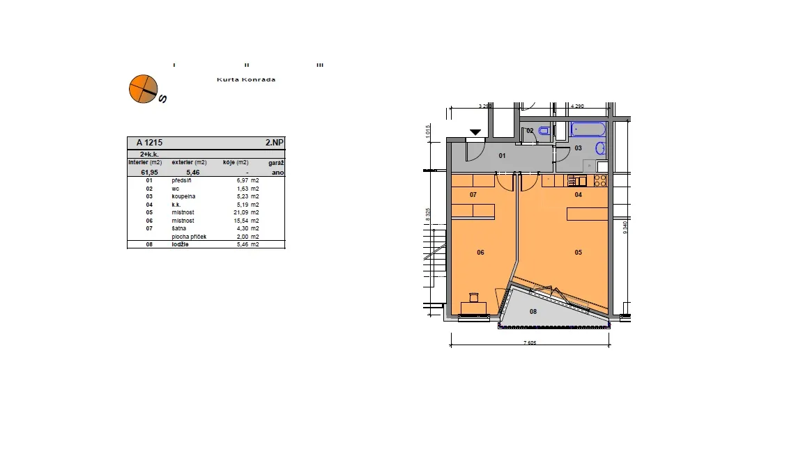 Pro zájemce o hezké a komfortní bydlení ve velmi dobře občansky vybavené části Prahy 8 – Libeň, ulice Kurta Konráda, nabízím prodej prostorného bytu 2+kk (60m2 + 5m2 lodžie) i garážového stání a sklepní kóje. Byt je součástí novostavby Vivus Aréna dokončené v roce 2013 a situován je na severovýchodní stranu. Hlavní část bytu tvoří světlý obývací pokoj propojený s prostorem pro jídelní stůl a kuchyňskou linku (celkem 26m2). Nejen v letních měsících tento prostor příjemně navazuje na lodžii (5m2). Kuchyňská linka je vybavena spotřebiči (lednice, mraznička, indukční varná deska a elektrická i mikrovlnná trouba, myčka). Vstupní předsíň osazená vestavěnou skříní umožňuje vstup do zajímavě řešené ložnice, která skýtá prostor pro vybudování vestavěné šatny (celkem 20m2). I z ložnice je možný vstup na balkon. Koupelna osazená vanou a přípojkou pro pračku, toaleta je řešena samostatně. K bytu náleží vhodně situované garážové stání a sklep. Budoucí majitel jistě ocení kompletní občanskou vybavenost – Galerie Harfa, stanice metra trasy B – Českomoravská, O2 arena, výborné restaurace a kavárny, parky, školy a školky, poliklinika. To vše v docházkové vzdálenosti. V případě zájmu o další informace či prohlídku mě, prosím, kontaktujte. Těším se na setkání.