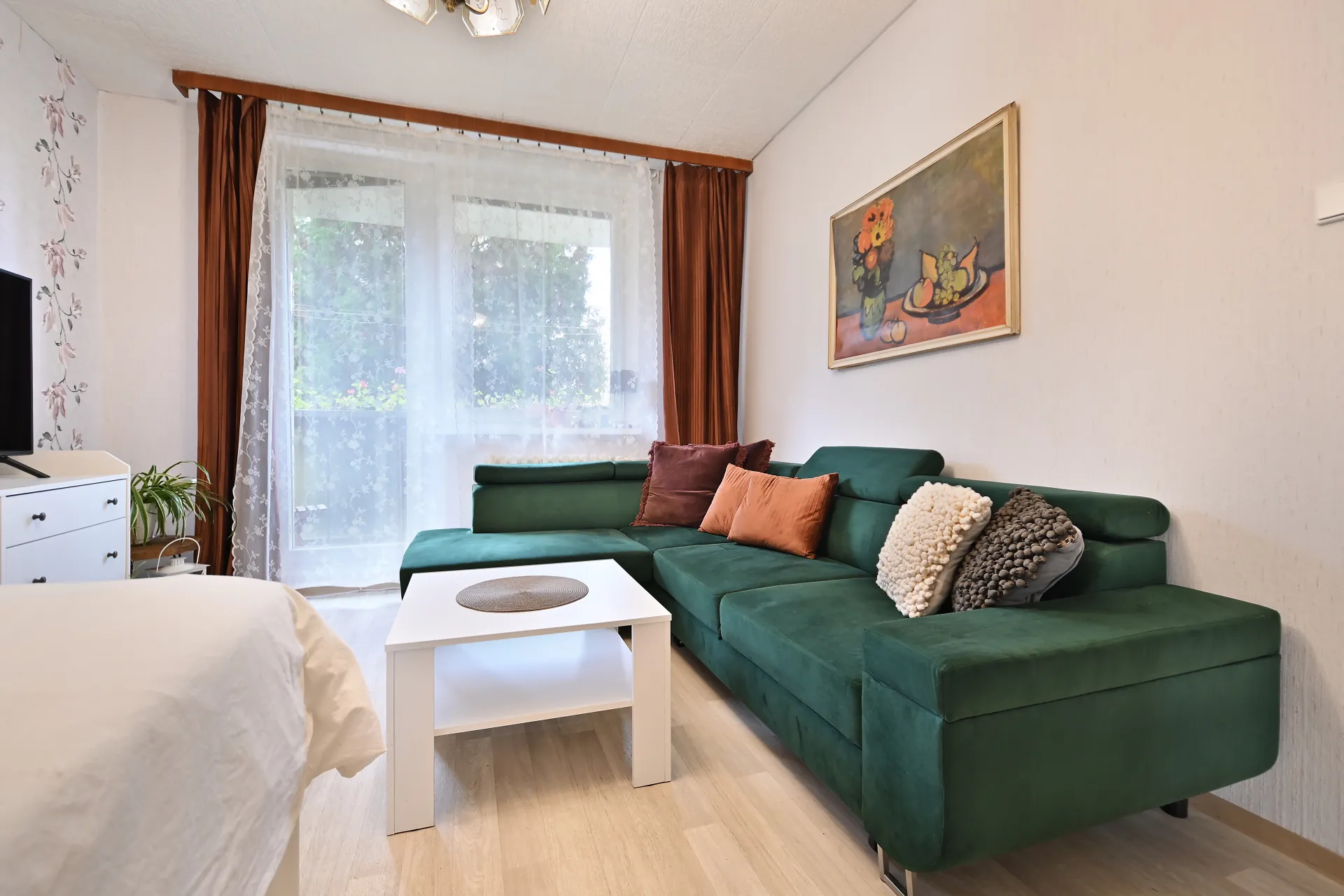 Pro zájemce o dostupné bydlení ve velmi klidné části Prahy 18 – Letňany, ulice Chlebovická, nabízím pronájem zcela zařízeného bytu 1+1 (35,8m2 včetně lodžie 4,2m2). Byt situovaný v prvním patře (2.NP) domu s výtahem. Hlavní část bytu tvoří světlý pokoj s možností vstupu na lodžii. Celý byt je orientovaný na západní stranu, okolí bytu je zcela klidné. Kuchyně je osazena původní linkou s plynovým sporákem a el. troubou. Je zde i přípojka pro pračku. Součástí bytu je veškeré vybavení dle fotografií. Původní koupelna osazená menší vanou, umyvadlem a toaletou. Byt je vhodný pro jednotlivce nebo pár, který ocení klid a občanskou vybavenost okolí. Výborná dostupnost zastávky metra trasy C (Letňany 2 minuty autobusem). K dispozici ihned. Vratná kauce ve výši jednoho nájmu. Provize zprostředkovatele jeden měsíční nájem + DPH. V případě zájmu o další informace či prohlídku mě, prosím, kontaktujte. Těším se na setkání.